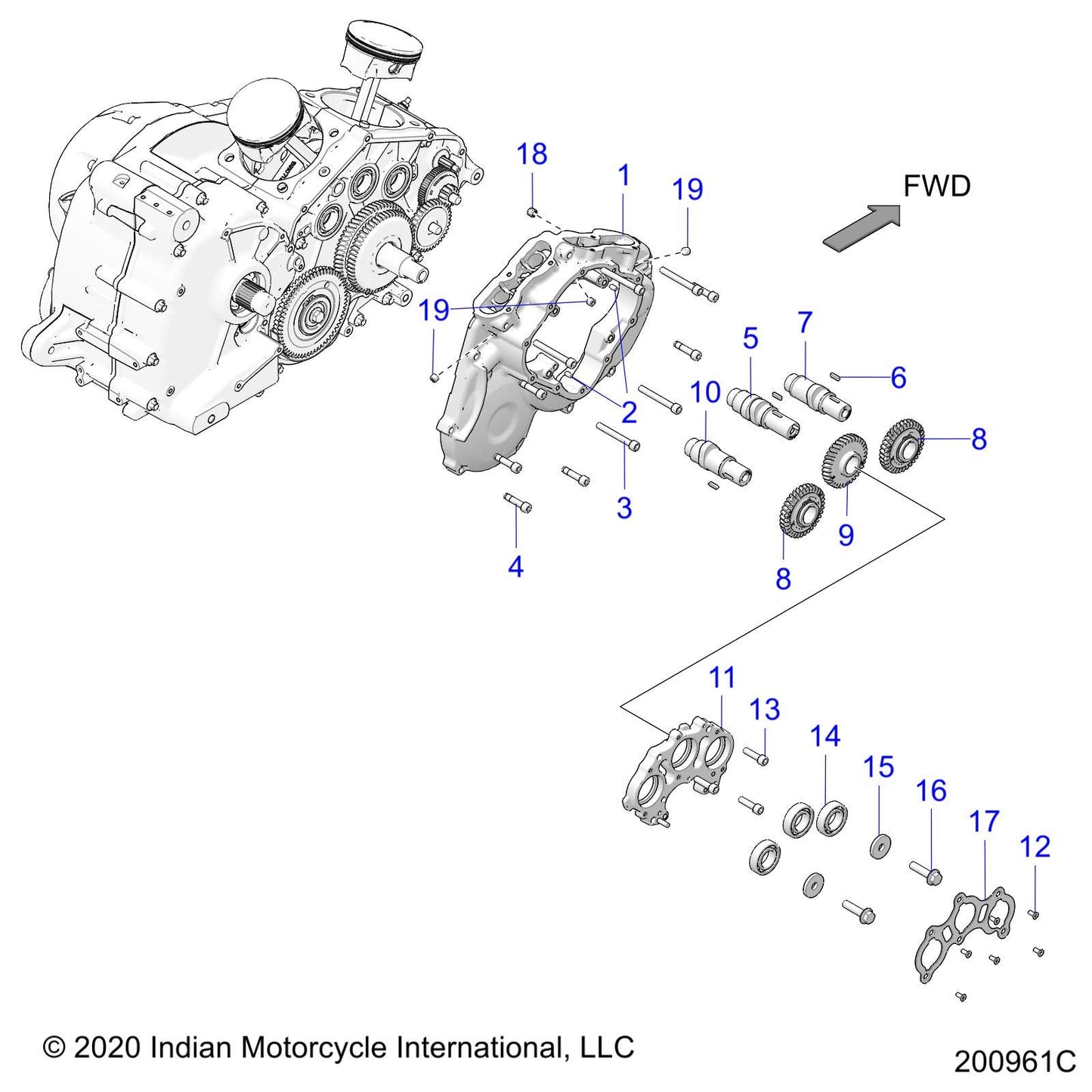 Indian Motorcycle Cam Cover Assembly, Inner, Genuine OEM Part 1205447, Qty 1