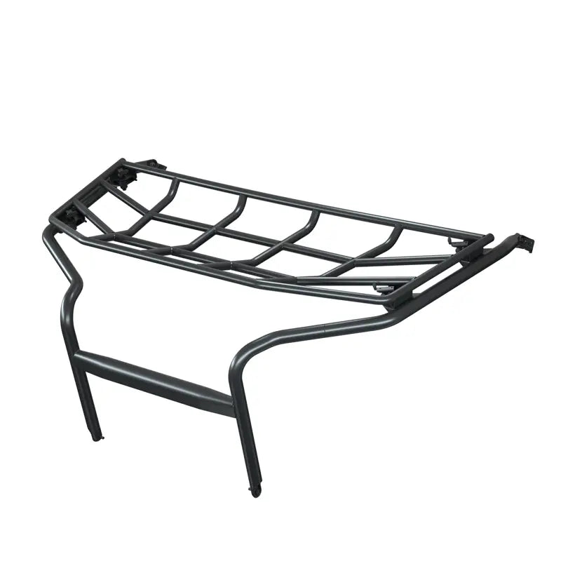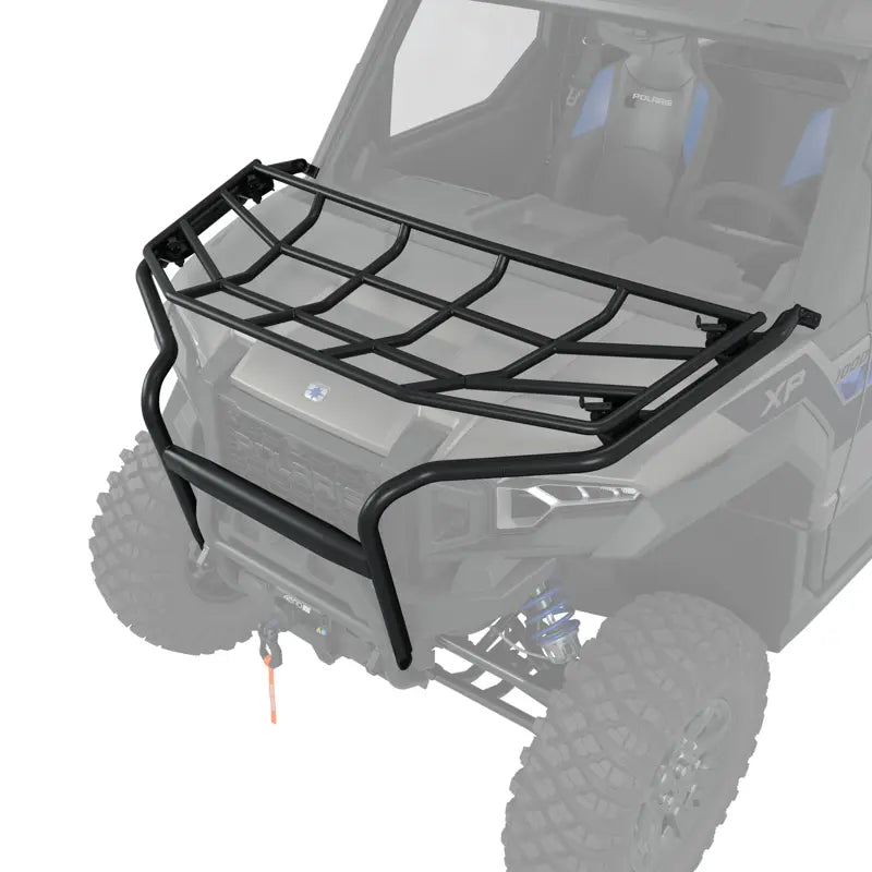 Protect against brush or debris with this Hood Rack - Stock Bumper, made from durable, powder-coated tube steel. This rack has a 100-pound load-carrying capacity, ensuring it can handle your gear with ease. The toolless installation allows for quick and easy access to the front hood cover, making it convenient to use. This steel rack is designed for both durability and functionality. With its easy installation process and robust construction, the Hood Rack is an essential accessory for any off-road vehicle, providing reliable protection and additional storage capacity.