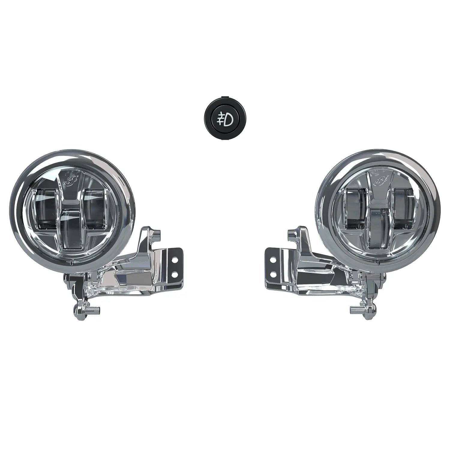 Use this bracket, harness, and hardware to mount and power a pair of Pathfinder S LED Driving Lights (lights sold separately). The forged, chrome-plated bracket mounts securely to the bike and hosts the lights, and the wiring harness connects them to the bike’s electrical system.