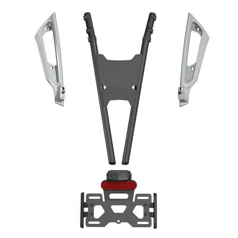 Relocate your license plate underneath the seat with this High License Plate Mount that gives your FTR clean and sporty style. This kit contains everything you need to mount the stock plate holder in an underseat location, and it also includes cast aluminum hand-holds on which to mount the rear turn signals. The Accessory Mounting Kit (sold separately) is required. For additional custom style, install a set of Clear Turn Signals (sold separately).
