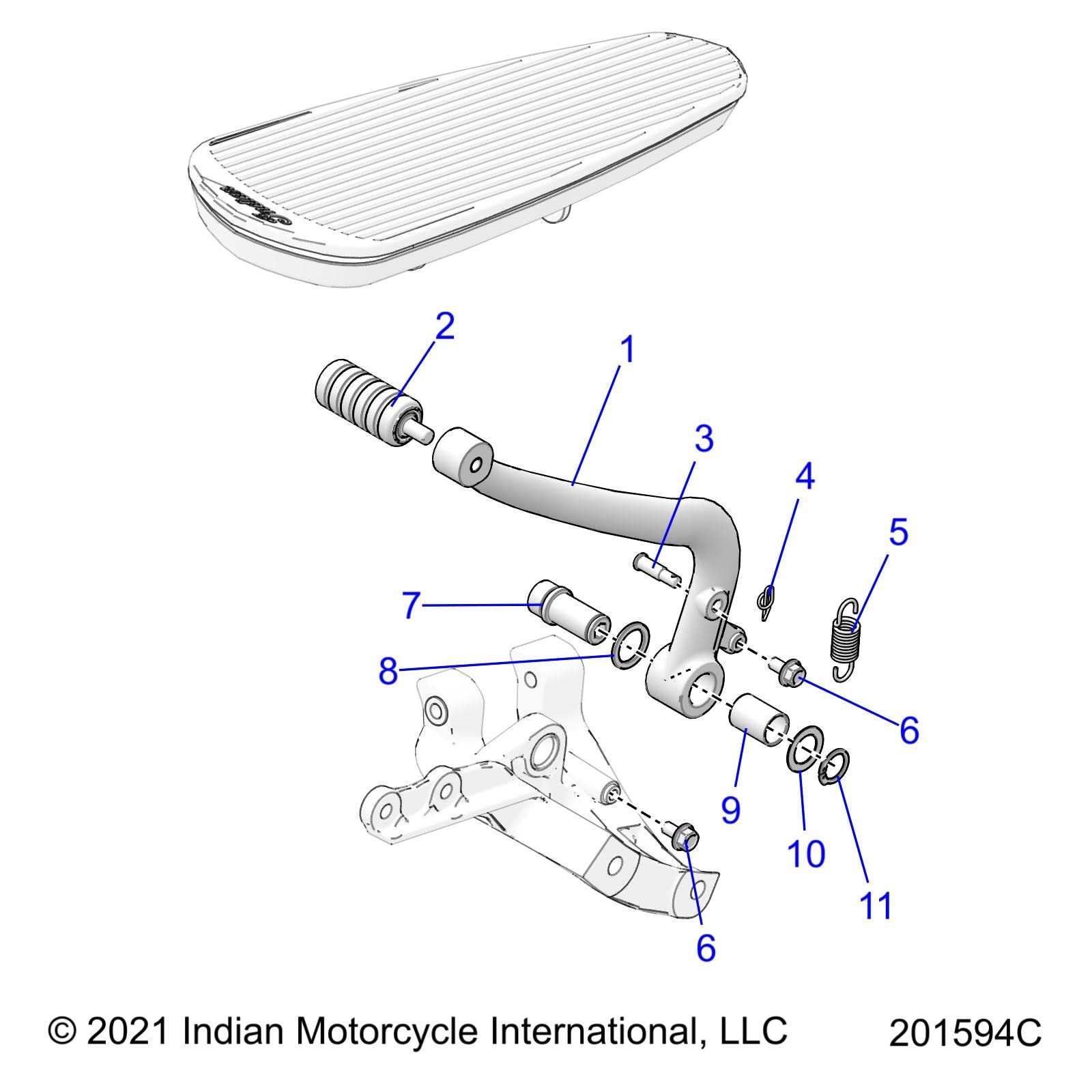 Indian Motorcycle Brake Peg Pedal Assembly, Cruiser Black, Genuine OEM Part 1023251-266, Qty 1