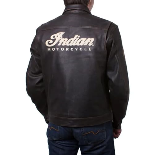 Indian Motorcycle Men's Leather Classic Riding Jacket with Removable Lining, Dark Brown - L - 286082806