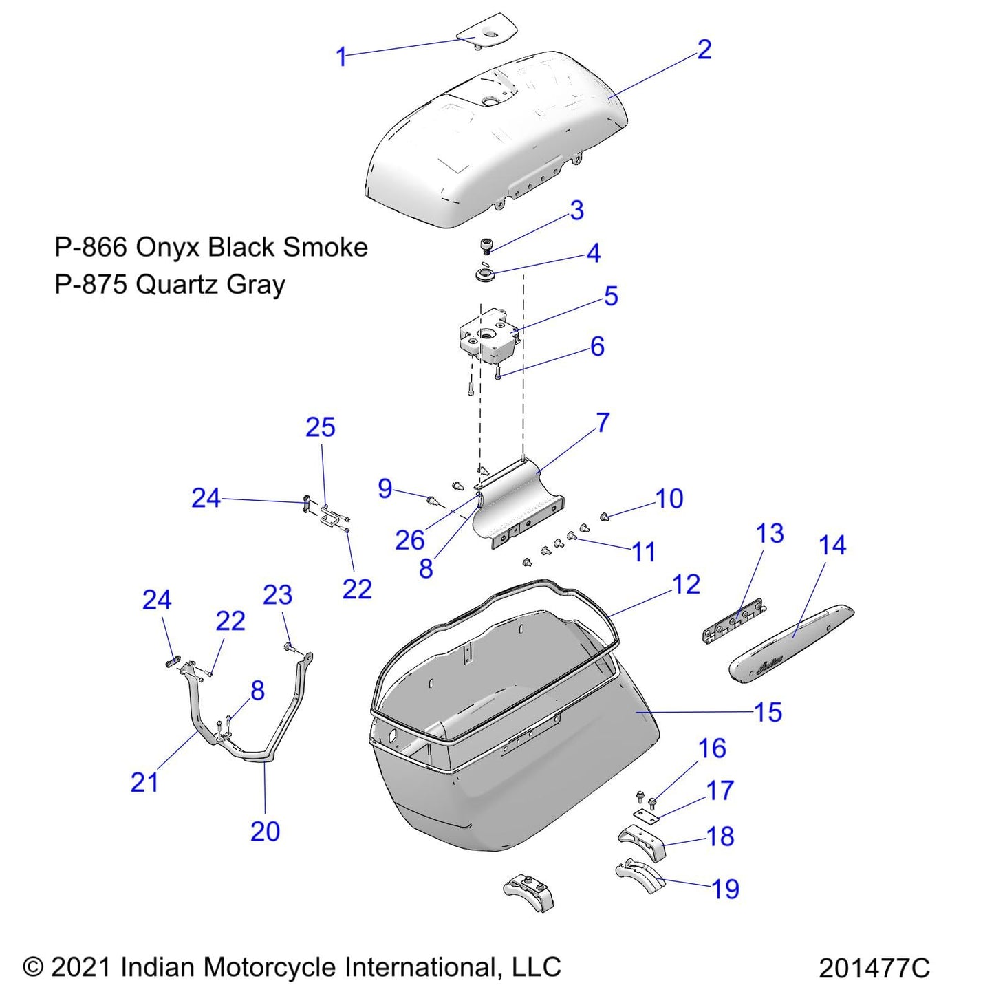 Indian Motorcycle Saddlebag Hinge Cover, Left, Genuine OEM Part 5633981-02, Qty 1