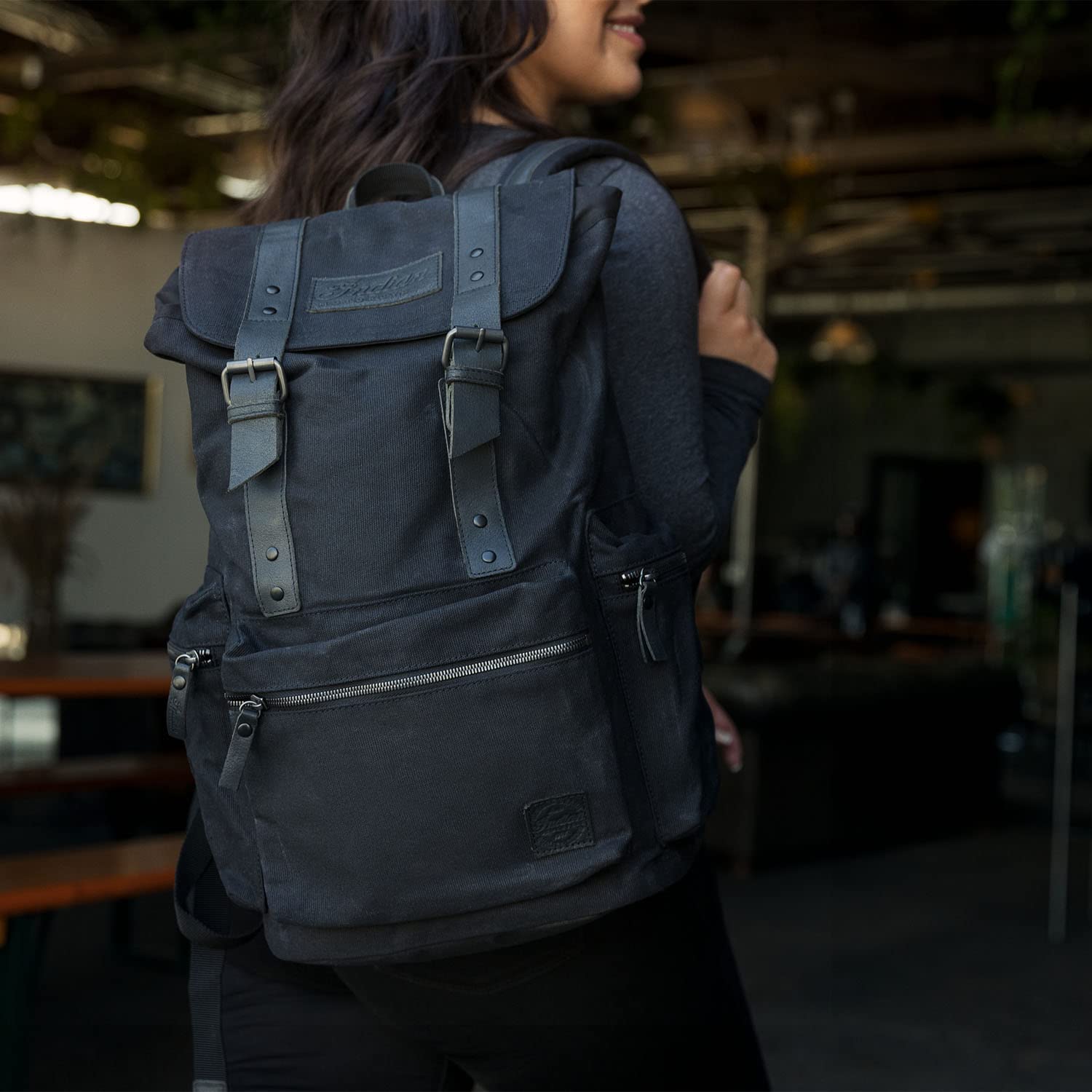 Indian Motorcycle Waxed Canvas Backpack, Black - 2861696