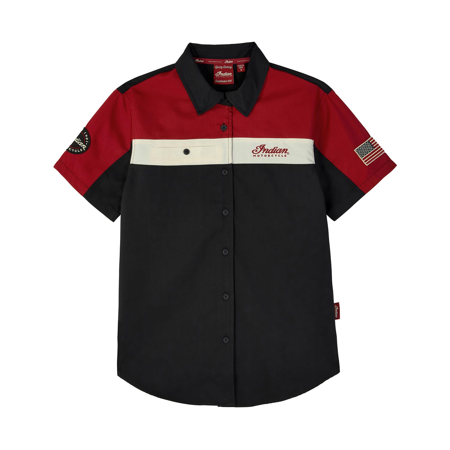Indian Motorcycle Women's Headress Colorblock Shop Shirt, Red