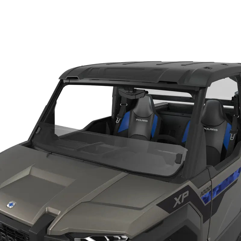 Enjoy the best of both worlds with a Lock & Ride Half Poly Windshield. This windshield provides added protection from the elements, while also allowing optimum airflow and visibility. Plus, quickly install or remove it with the integrated quarter-turn handles.