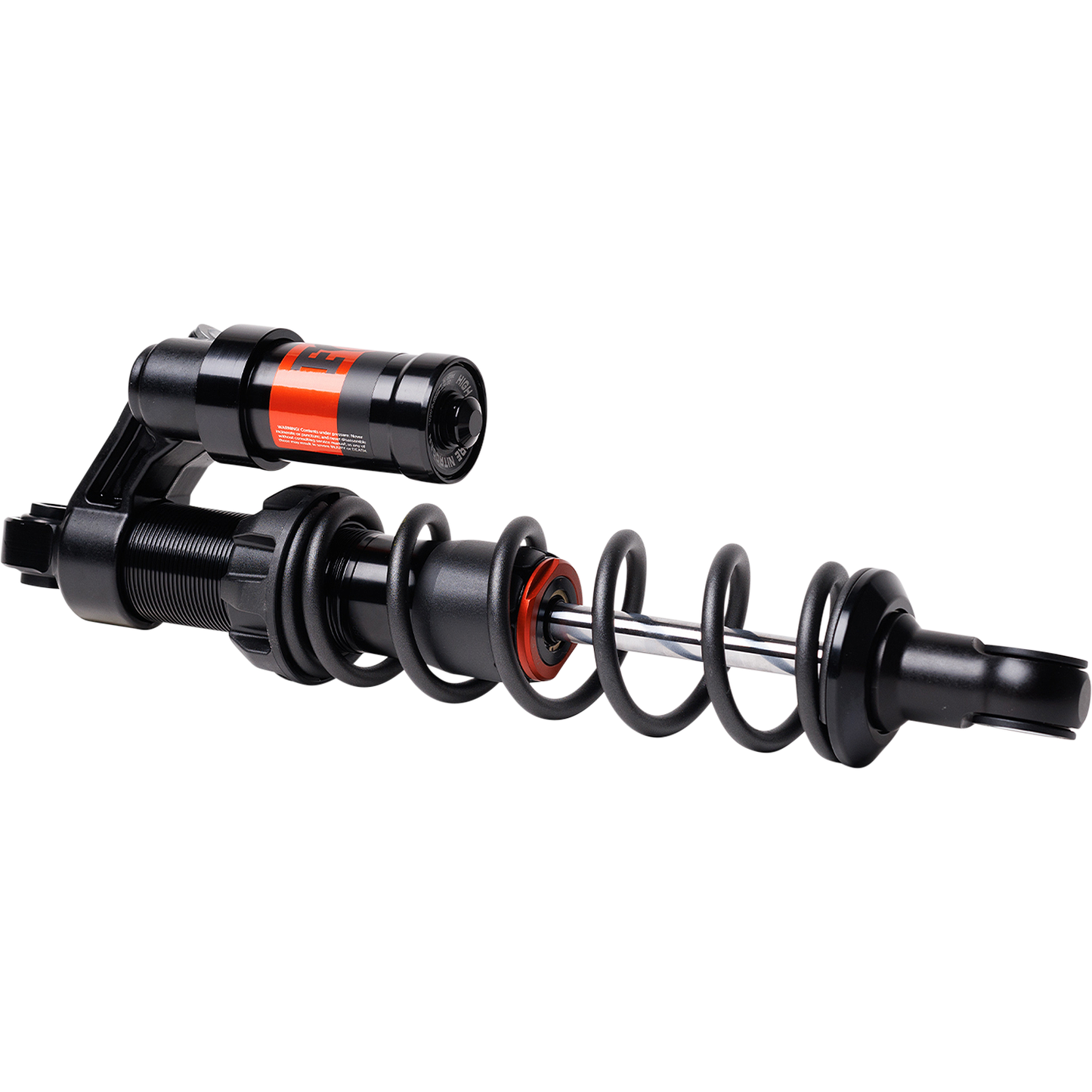 Fox Quick Switch (QS) coil shocks for trail/crossover applications provide the same performance advantage Fox is known for in the backcountry now. Ride harder with less fatigue without a compromise of durability. Experience a new sense of control on the snow due to velocity and position-sensitive damping technology. Quickly adjust the compression damping with Fox's QS3 to suit snow conditions. Three positions keep the gloves on and the adjustment simple. Focus on riding instead of counting clicks. Fox's position-sensitive damping technology, Rifle Bore, is now applied to the Factory Race Series rear track shock. Spiral grooves inside the shock allow the oil to flow around the main piston, reducing the damping force in the ride zone for a plush feel. The grooves terminate through the final 30% of the travel, forcing oil to flow through the main piston. The final result is a significant increase in bottom-out resistance to cushion hard hits.